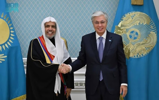 Kazakhstan’s President Kassym-Jomart Tokayev awarded the Order of Friendship to Sheikh Mohammed Al-Issa, Secretary General of the Muslim World League and Chairman of the Organization of Muslim Scholars, during a meeting at the Presidential Palace in Astana.